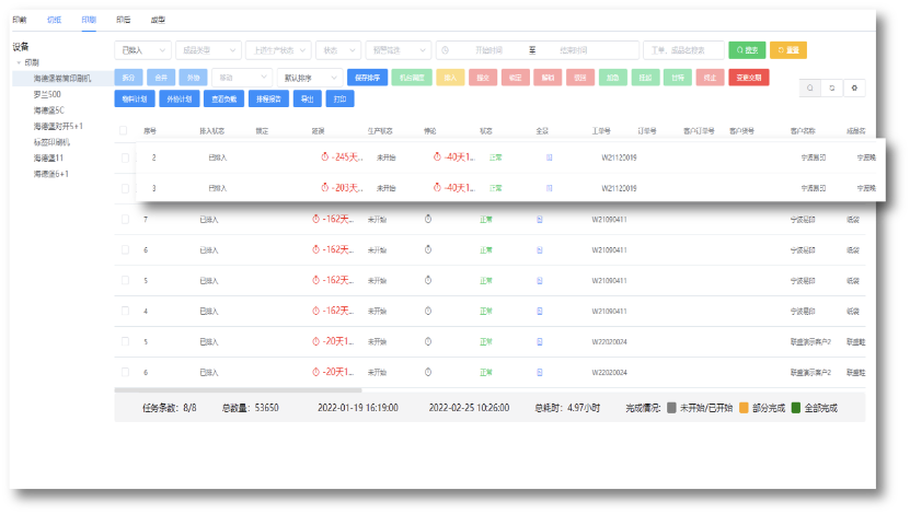 4.支持各個機(jī)臺根據(jù)交貨時間,印色,幅面等條件進(jìn)行自動排序,同時也可進(jìn)行手動拖拉;